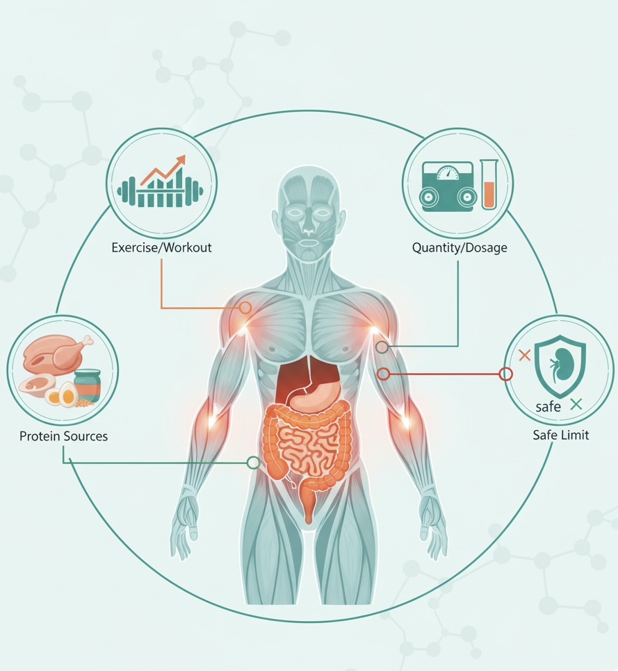 Apports optimaux en protéines pour sportifs : recommandations en g/kg, effets sur la santé, tolérance rénale et hépatique, exemples pratiques, FAQ et lexique complet.